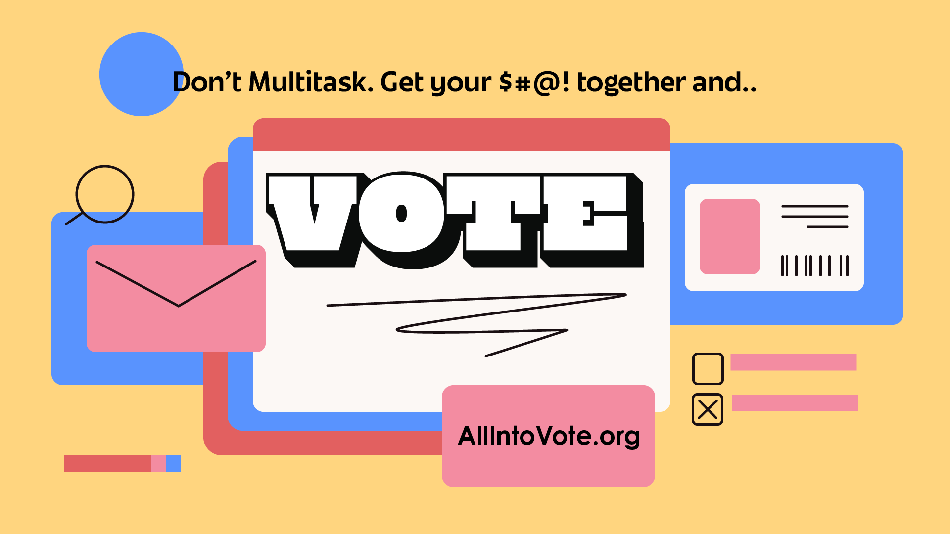 I found that 18 to 25-year-olds tend to have busy schedules. Sometimes, all we need is a reminder. Using a flat, vector design, I wanted to utilize the design of the digital tools that our audience uses most. This approach also incorporates tough love by calling out procrastination and encouraging the audience to vote.